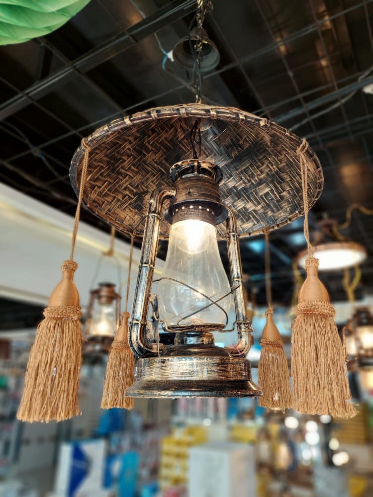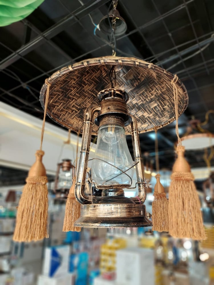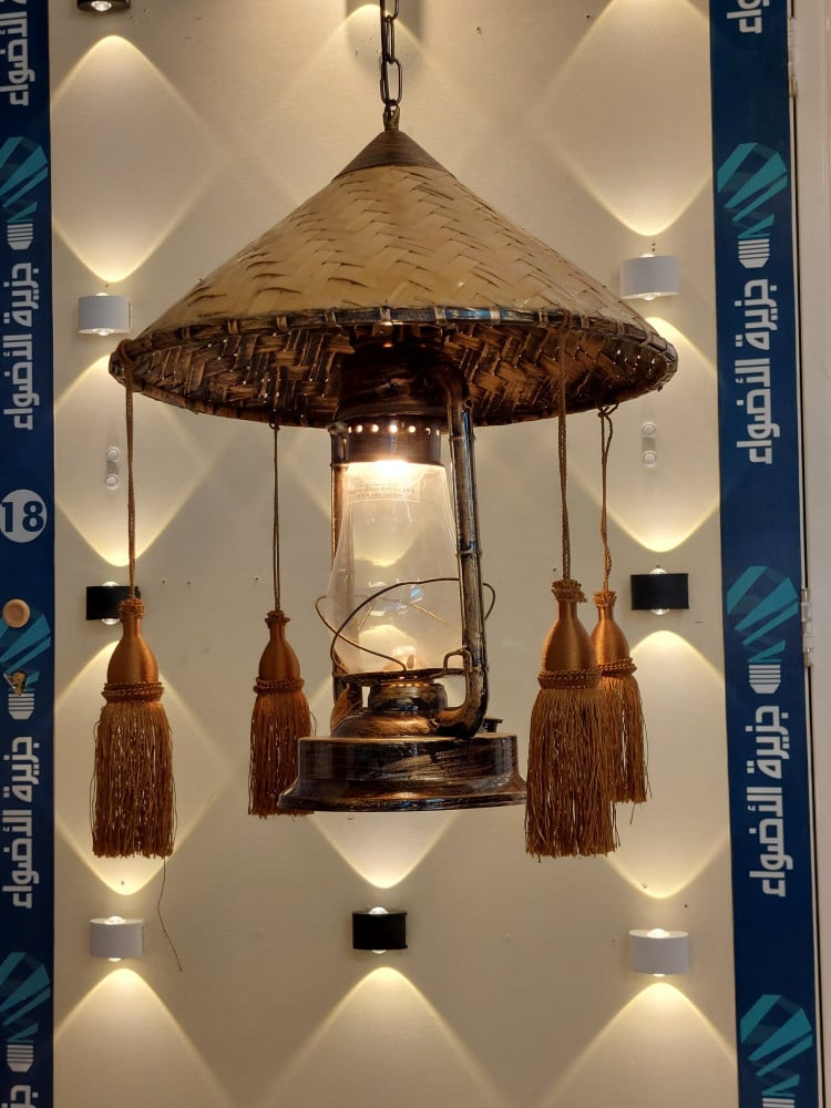 ثرياء سراج تراثي بقبعه من القش مقاس XL سنه E27